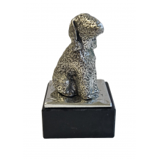 Amerikaanse stafford groot zilvertin met oren op marmer voet