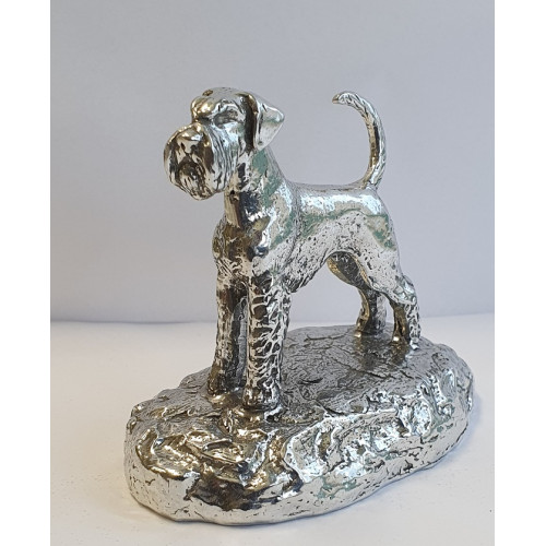 Schnauzer op rots, zilvertin, Schnauzer op rots, zilvertin, Honden op rots