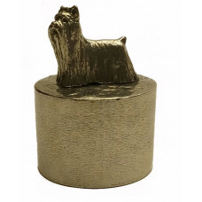 Urn van een Yorkshire terriërInhoud urn: 30CC.Afmeting: lengte hoogte 35mm diameter van 50mmKl..