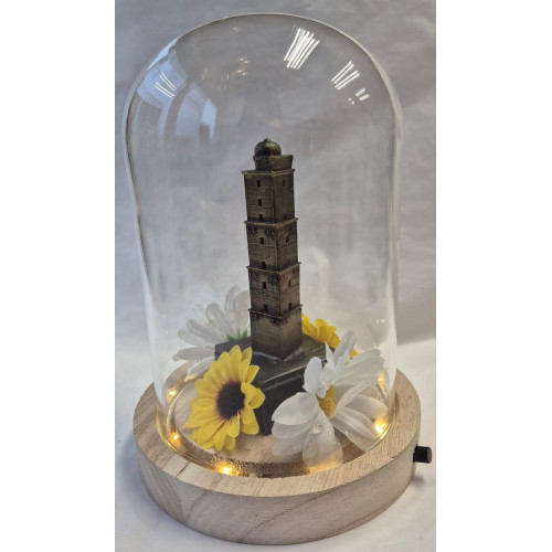Glazen stolp met Brandaris Terschelling verbronsd