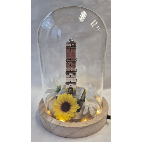 Glazen stolp met Brandaris Terschelling Zilvertin