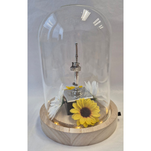 Deze glazen stolp staat op een blanco houten basis, creëert absoluut een fijne chique sfeer in uw interieur.
