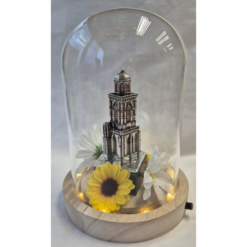Glazen stolp met Lebuinuskerk Deventer Zilvertin