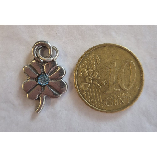 Klavertje vier met blauwe Swarovski steen