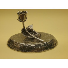 Urn roos fotolijst met waxinehouder, deze fotolijst is gemaakt van 95% tin en afgewerkt in ingekleur..