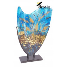 Product: Ovale vaasKleur: Blauw met goudMaat: 370x595mmMet metalen standaard Elke product van C..